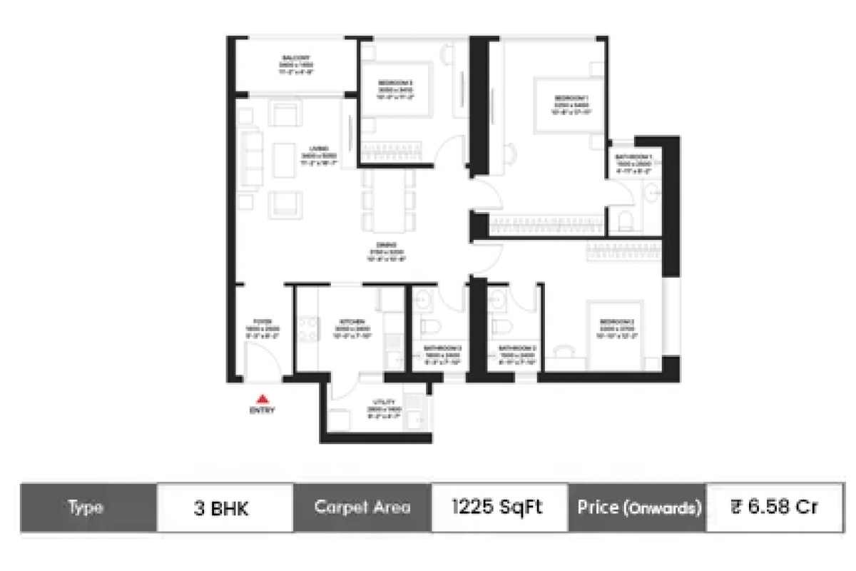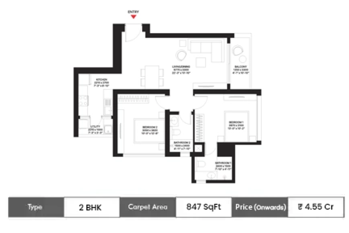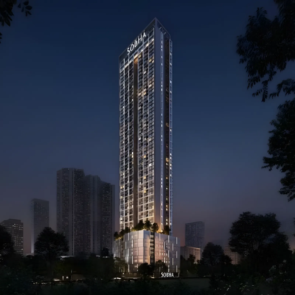 Sobha Inizio is a newly launched landmark in the prestigious lanes of Parel, South Mumbai. This classy elevation presents 2 BHK and 3 BHK affluent apartments. Every residence has an exclusive access point, ensuring complete privacy and space for the residents. The large layouts, sleek design, finest detailing, and high-end materials make these homes sophisticated and refined. Every home offers splendid sea vistas and the striking scene of the Atal Setu. Apart from this, you will have a range of modern amenities on your platter. Indulge in amenities like a rooftop infinity pool, a clubhouse on the 64th floor, an outdoor fitness corner, an observation deck, a sky lounge, an Alfresco deck, a pickleball court, a games lounge, a salon, and more.