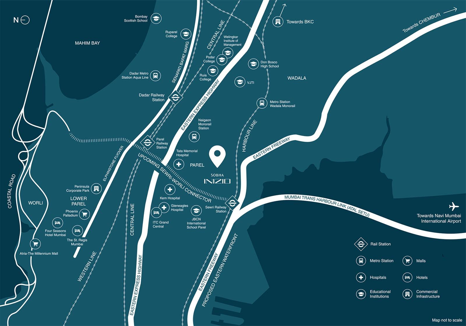 The upscale neighbourhood of your residence keeps you integrated with the best-in-class social facilities nearby. You are in the proximity of renowned landmarks such as JBCN International School, Mumbai Public School, Gleneagles Hospital, Jaslok Hospital, Phoenix Palladium, Atria The Millennium Mall, Mahalakshmi Race Course, One Lodha Palace, ITC Grand Central, IKEA, and Peninsula Corporate Park.